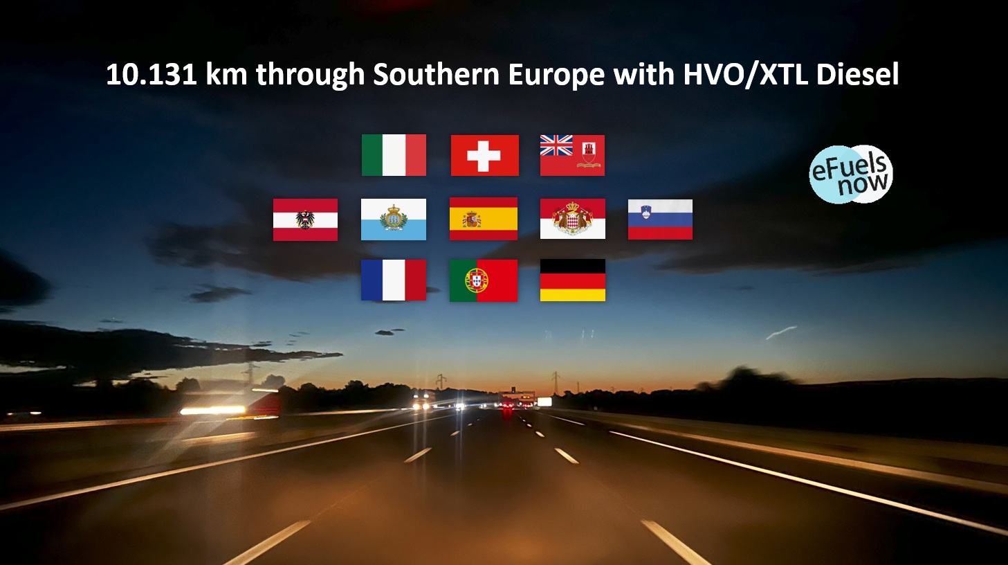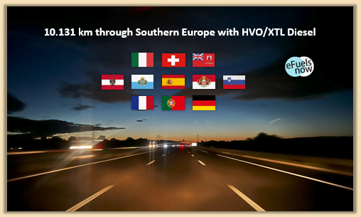 It´s about a tour of 10.131 kilometres through Southern Europe with a synthetic Diesel fuel which reduces CO2 by up to 90%. In the report linked below, technical issues are analysed. The reader finds a rational analysis with figures, supplemented by beautiful holiday pictures.