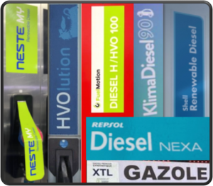 - Kennzeichnung an europäischen Zapfsäulen als „HVO“ oder „HVO100“ plus zusätzliche Kennzeichnung „XTL“ nach Norm „DIN EN 15940″. Außerdem wird oftmals ein Marken-Name angegeben (z.B. NesteMy, HVOlution).