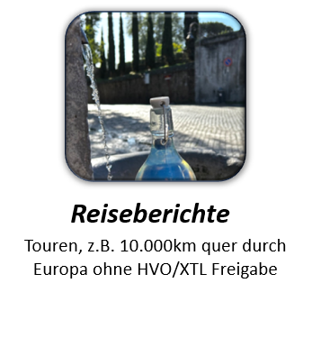 - Man kann nicht alle alten Dieselfahrzeuge nach-zertifizeren (Geld, Zeit, Kappa). Das hat man auch früher nicht gemacht. Eine offizielle Freigabe kann aber nur gegeben werden, wenn alles dokumentiert wurde (Prüfstandsläufe, Emissionsmessungen). Rein praktisch zeigen aber die Länder mit hohen Beimischungen, dass HVO in der Praxis keinerlei Probleme hervorruft. Das sind auch die Erfahrungen einschlägiger Institute wie des KIT und auch auch im eFuelsNow-Dauereinsatz. 99,xx% aller Diesel können HVO/XTL komplett ohne technische Vorbereitungen tanken.