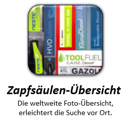 Hier geht´s zur Zapfsäulenübersicht (PDF) mit Fotos und Übersichts-Listen sämtlicher HVO-Kraftstoffe weltweit.